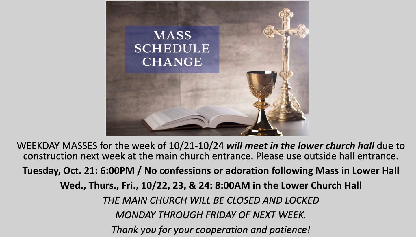 Tuesday: 6:00 PM Followed by Eucharistic Adoration & Confession