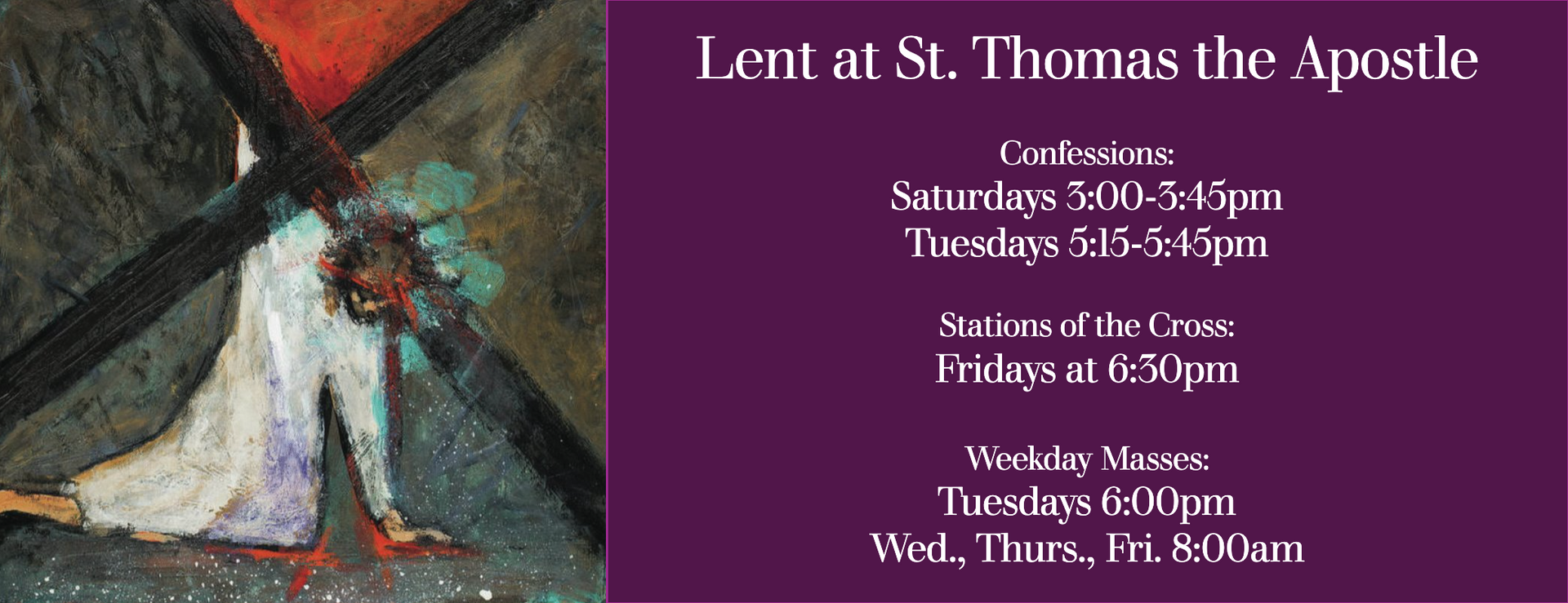 *Effective Feb. 10, 2026: Tuesday Evening Mass, Adoration & Confession will be offered April 21 through August 25.* No Tuesday Masses until then.